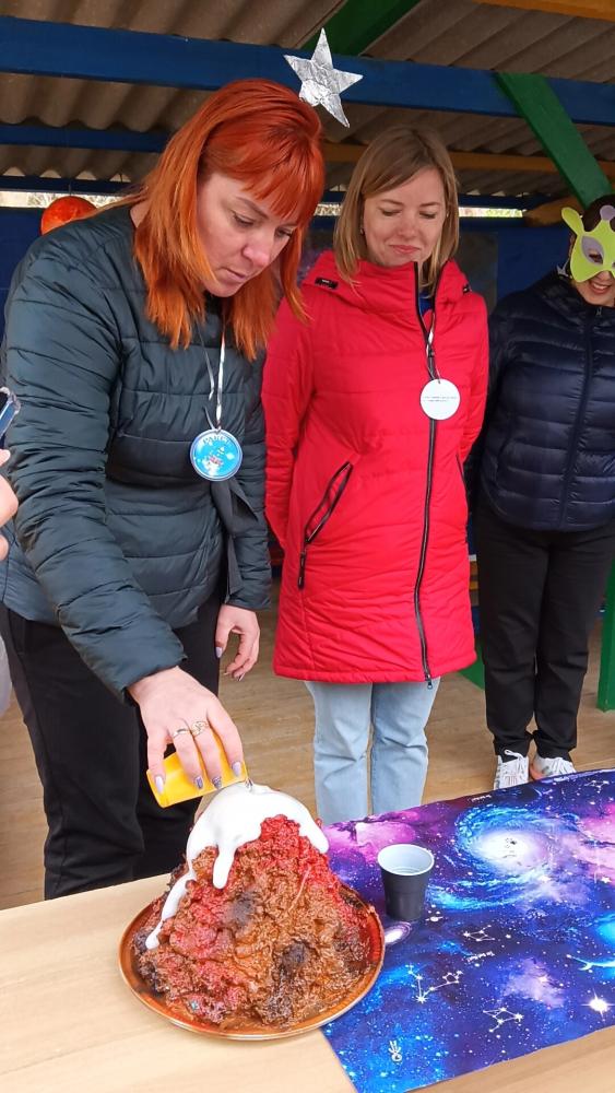 На каждой планете их встречали педагоги, которые рассказывали интересные сведения о планете и команды выполняли задания, соревновались в эстафетах «Перенеси марсианский грунт», «Победи невесомость», «Соревновались в меткости» , «Собирали осколки метеоритов», провели опыт на Венере «Извержение вулкана», «Слушали послание в наушниках», отгадали кроссворд и собрали все осколки летающей тарелки инопланетян.