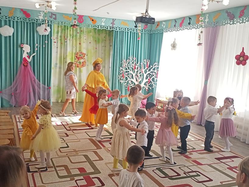 Дети вместе с мамой Курочкой пели красивые песенки, танцевали, играли и радовались весеннему Солнышку.