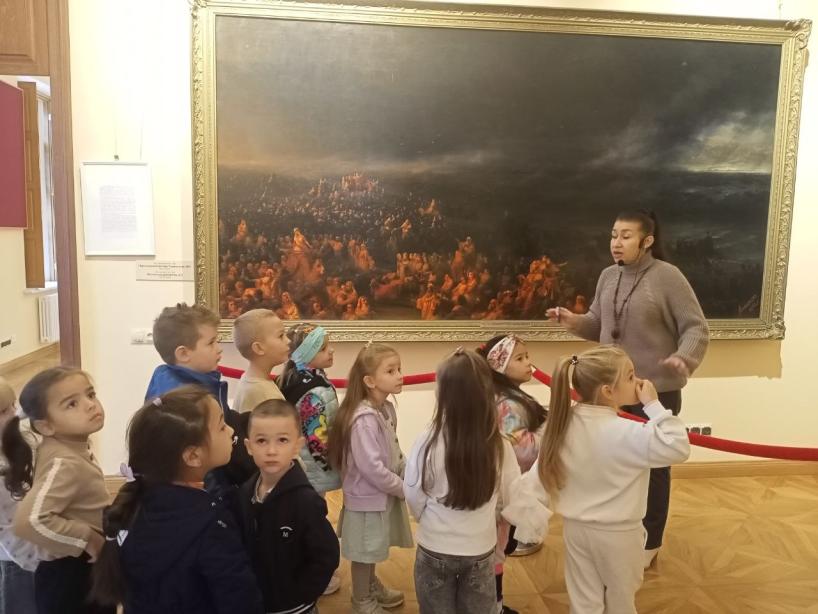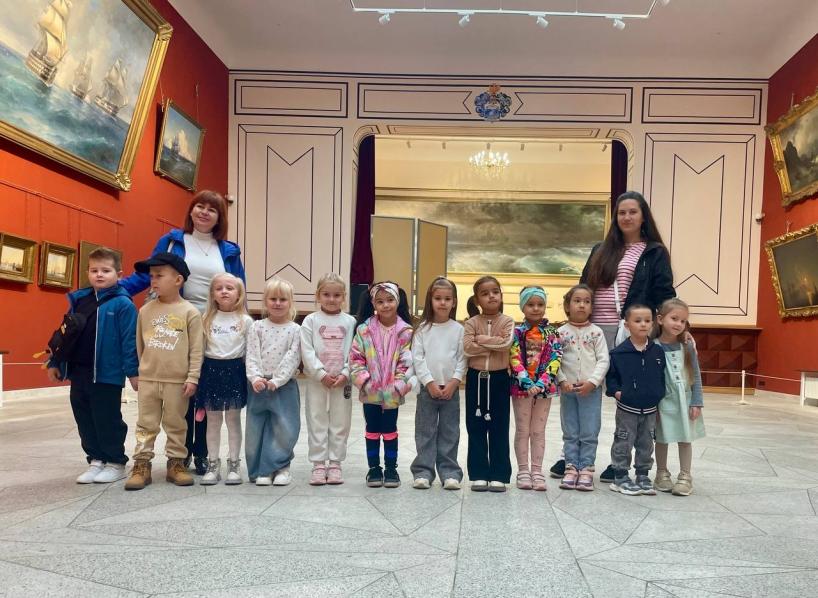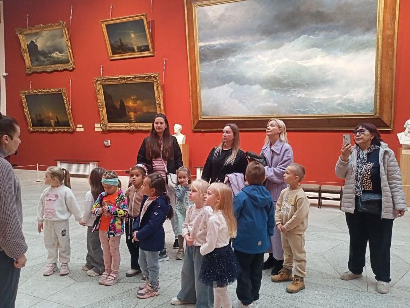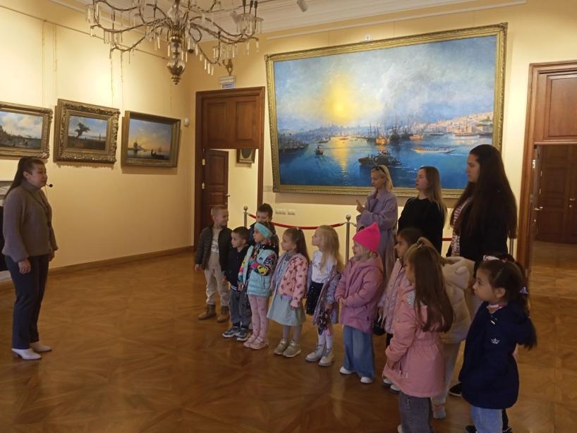 В рамках реализации Федеральной инновационной площадки "Картинная галерея в детском саду" 18 октября 2025 года воспитанники старшей группы "Солнышко" вместе с педагогами и родителями посетили Феодосийскую картинную галерею им. Айвазовского.