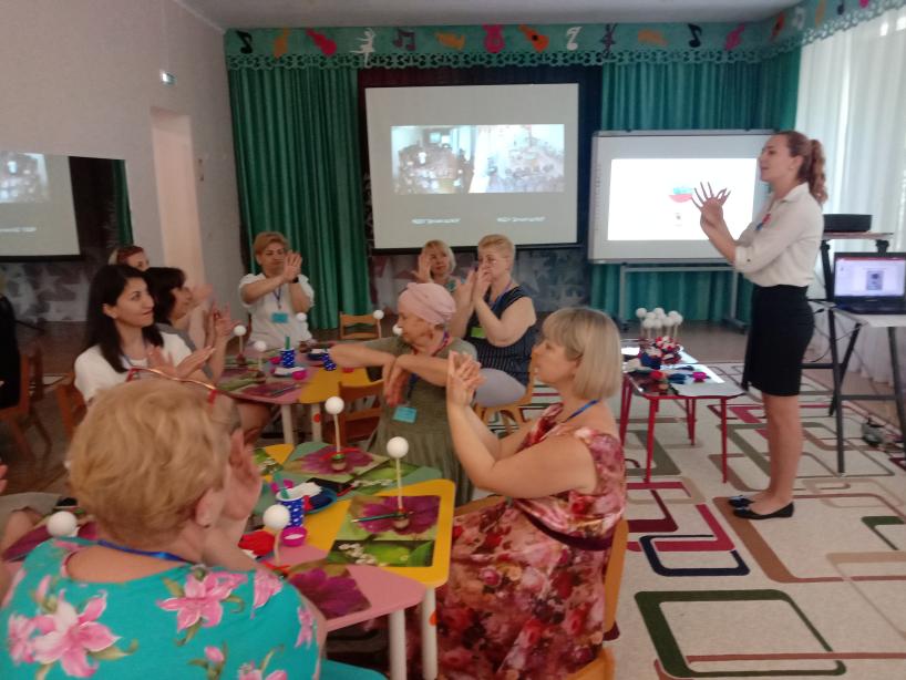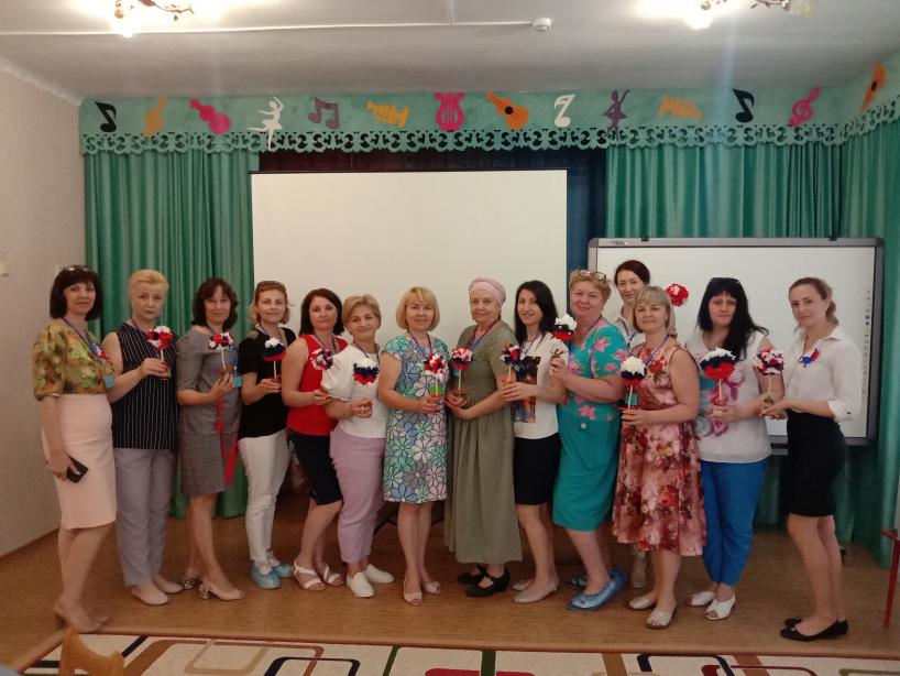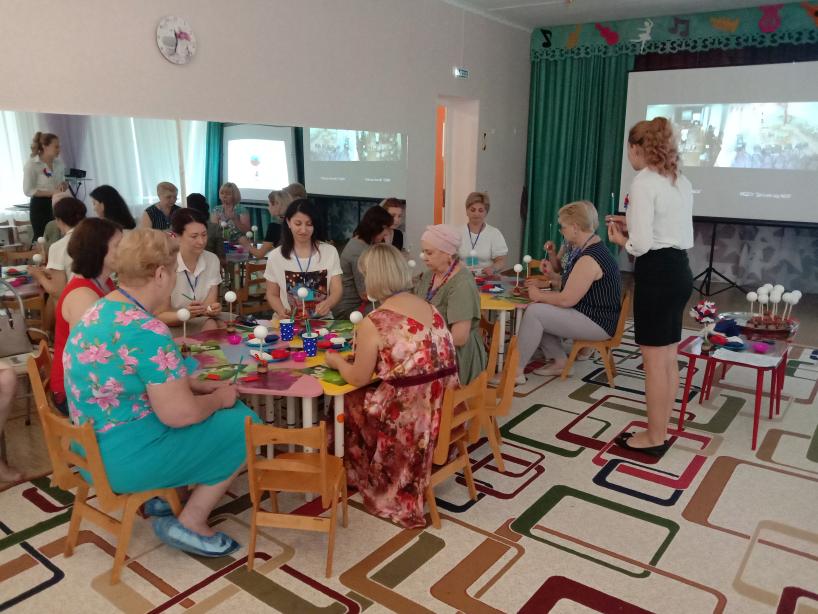 10 июня 2022 года на семинаре для руководителей дошкольных учреждений и старших воспитателей воспитатель Кристина Николаевна провела мастер-класс «Топиарий из салфеток». Педагог предложила создать свое «дерево счастья» - топиарий в технике торцевания.