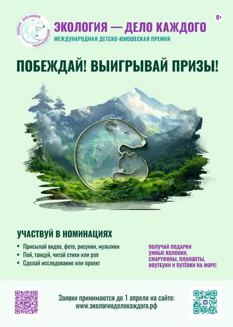 Приглашаем детей и взрослых принять участие в Международной детско-юношеской премии «Экология – дело каждого».
