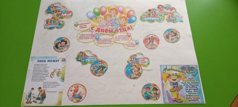 В подготовительной к школе группе «Улыбка» прошли мероприятия, приуроченные этому празднику. Были проведены тематические беседы: «Папа-это звучит гордо», « Мой папа лучше всех». Дети вспоминали добрые и ласковые слова по отношению к своим папам, отгадывали загадки про пап «Самый сильный», подготовили поздравительный коллаж для родных и любимых отцов! Изготовили необычные подарки - изобразили каждый своего отца «Мой любимый папа». Ребята вложили в свои шедевры огромную любовь к своим папам.